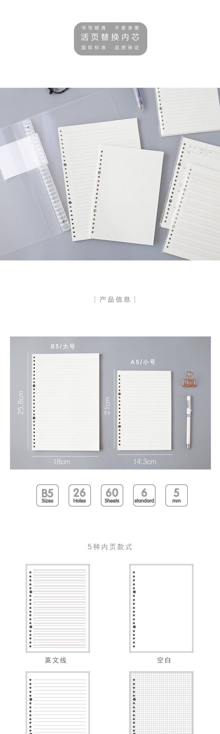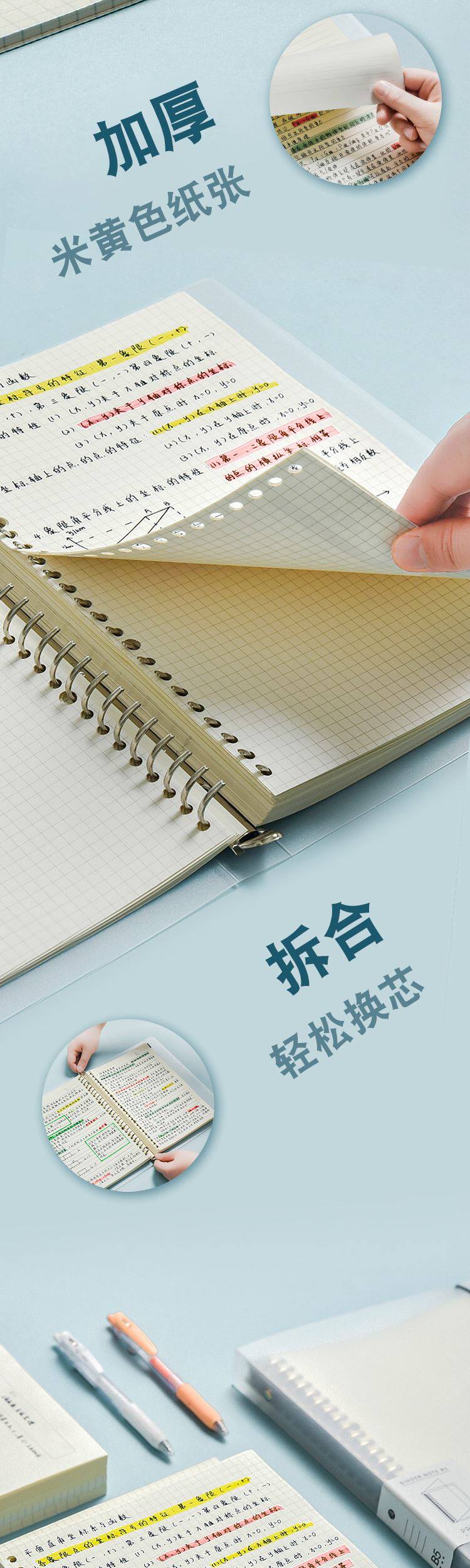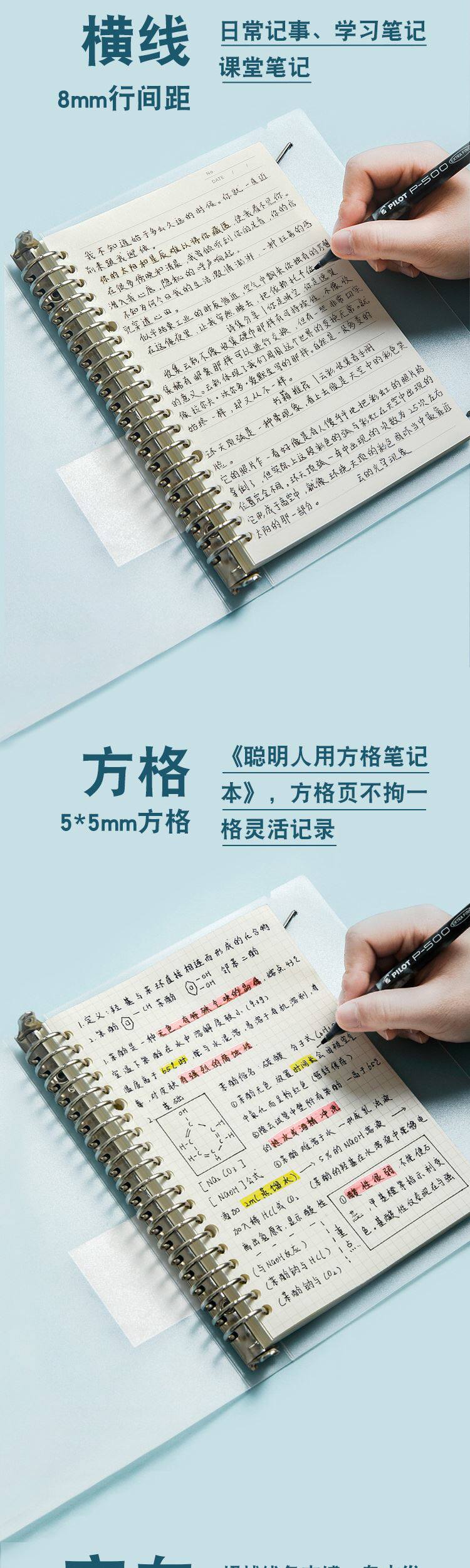 采用优质80g道林纸,书写顺滑、不易渗墨。