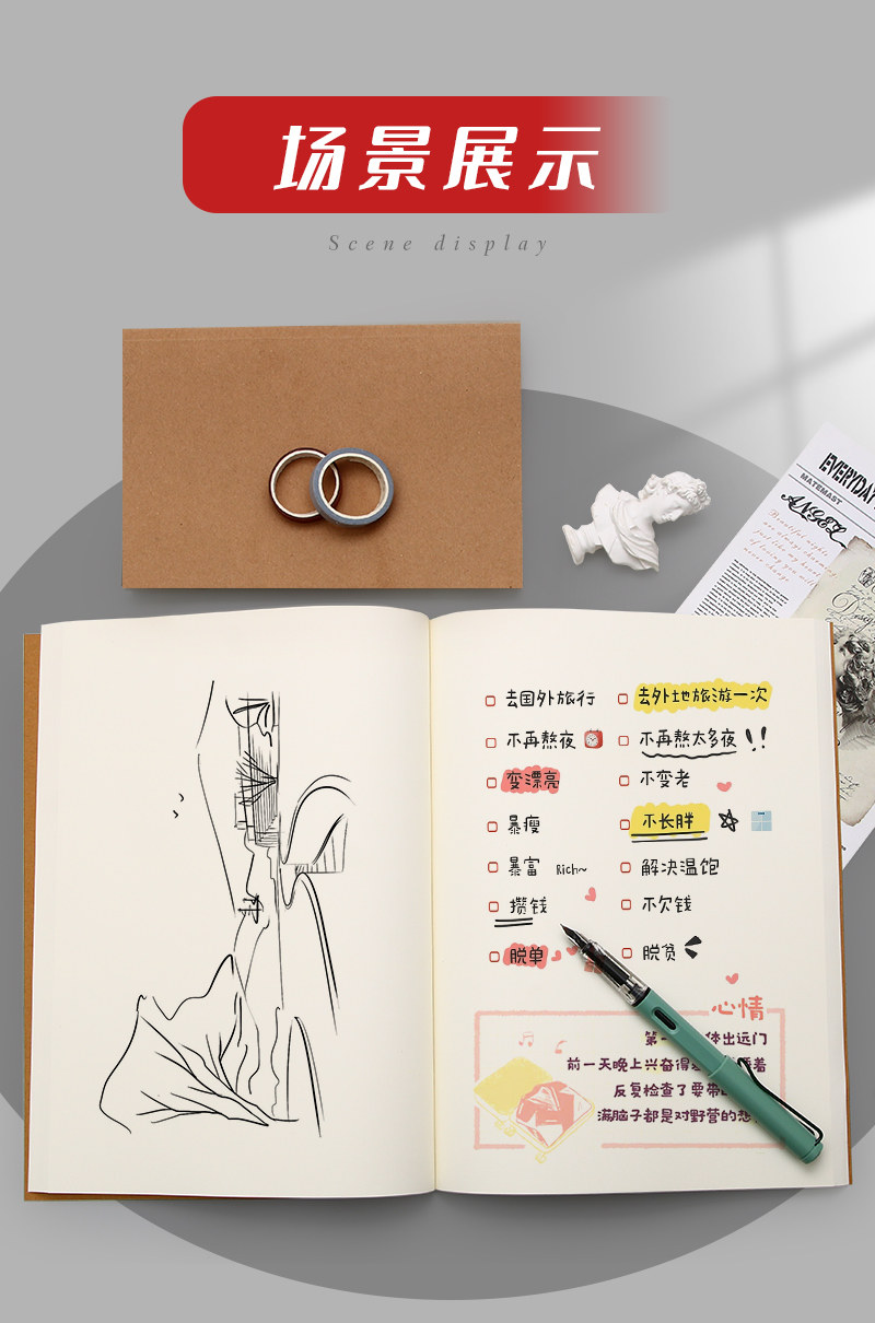 Sổ ghi chú da trắng a4 cuốn sách trong gió vuông đường dây big trai a5 vẽ vẽ vẽ vẽ tranh