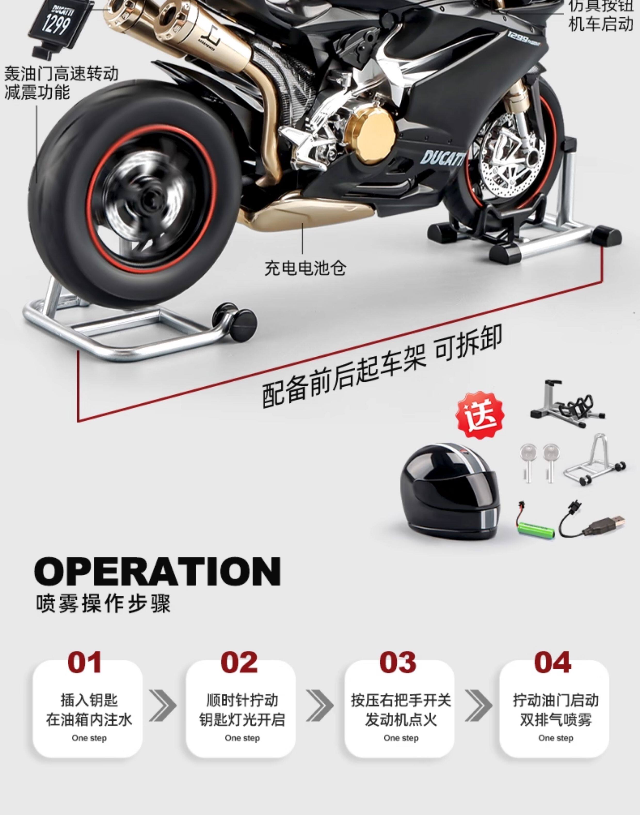 Mô hình xe máy ducati có thể đánh lửa kawasaki H2R là một bộ sưu tập quà tặng của cậu bé