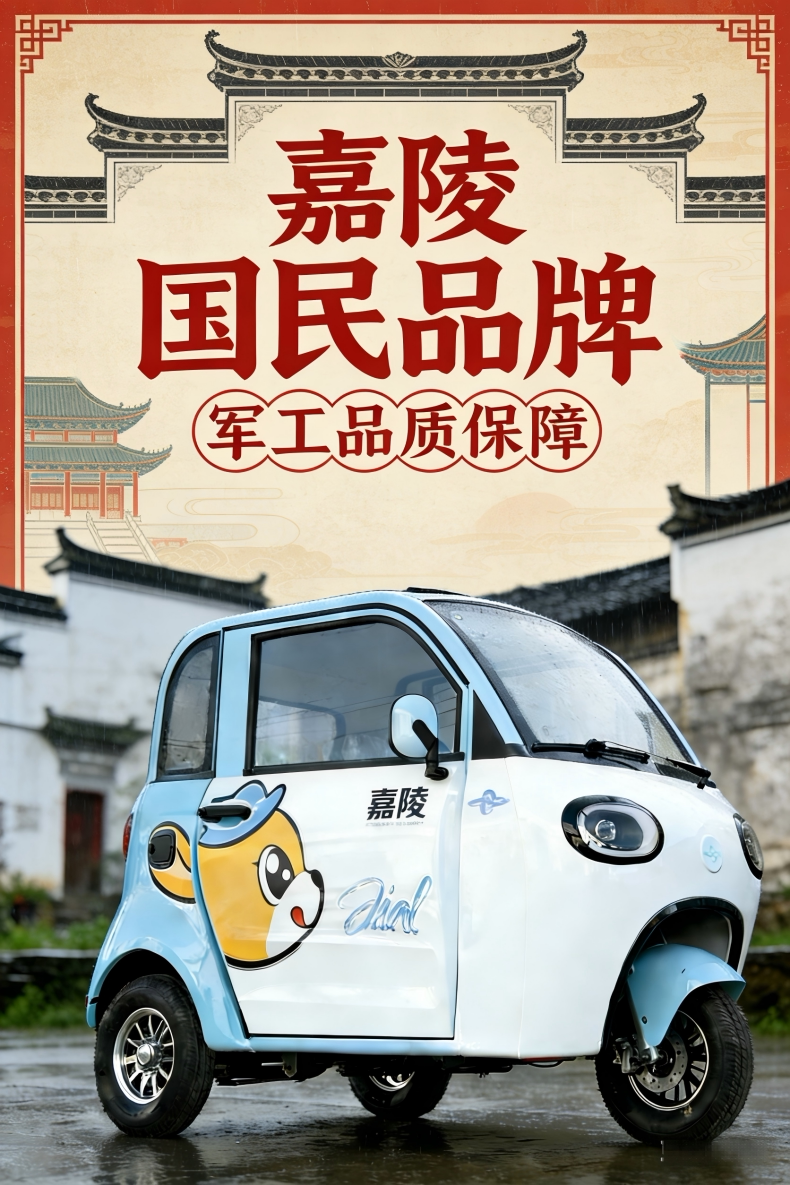 Xe điện ba bánh của thương hiệu Gia Lăng hoàn toàn khép kín đưa đón trẻ em, người già, phụ nữ có thể lên xe điện thay vì đi bộ.