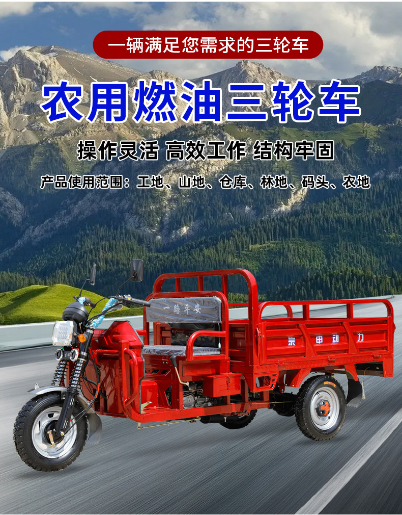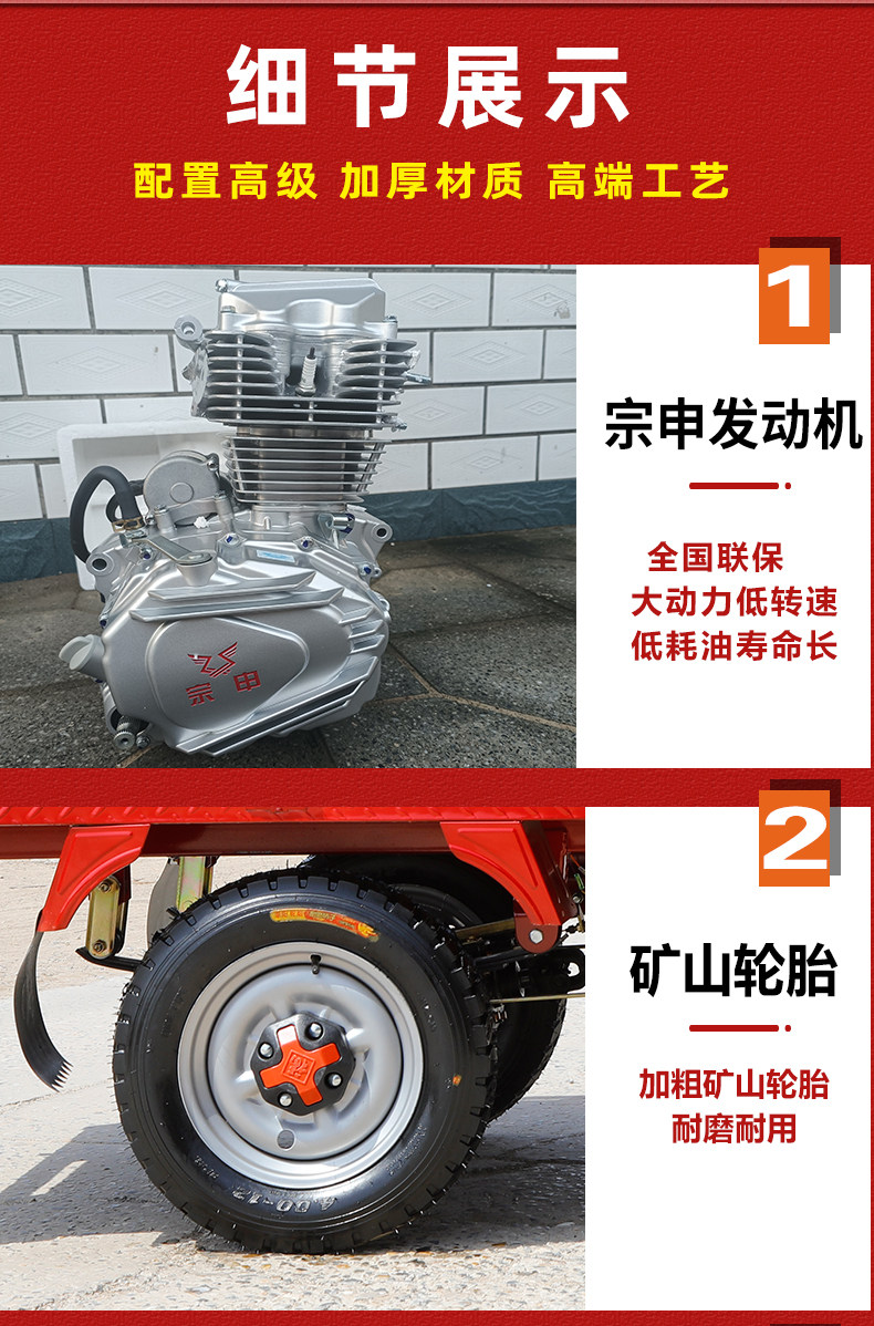 Zongshin Longxin động cơ xăng mới ba bánh xe máy nhiên liệu gia đình nông nghiệp kéo hàng ba bánh
