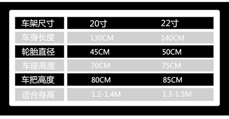 20寸适合125CM到145CM的儿童或学生