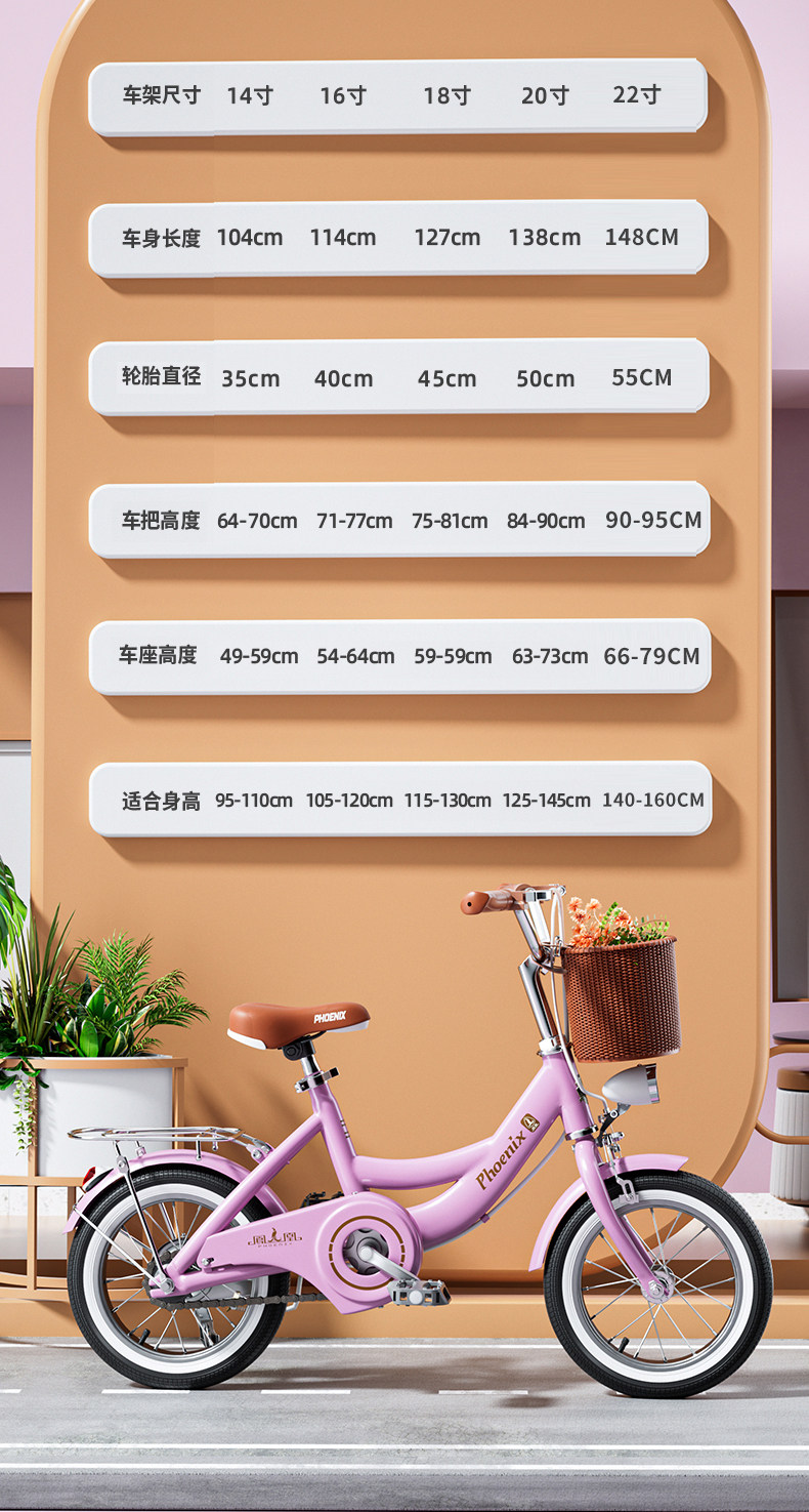 Phoenix trẻ em xe đạp cô gái 3-6-7-8-12 tuổi trung bình cô gái mẫu công chúa trẻ em chân đạp xe đạp