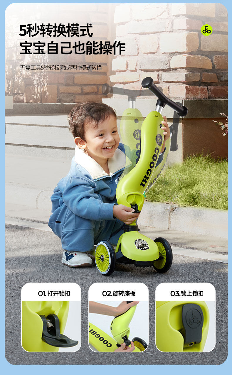 Cool Ride Kids Scooter 2 trong 1 có thể đi xe tập đi 1 đến 3 tuổi bé trượt xe trẻ em cân bằng