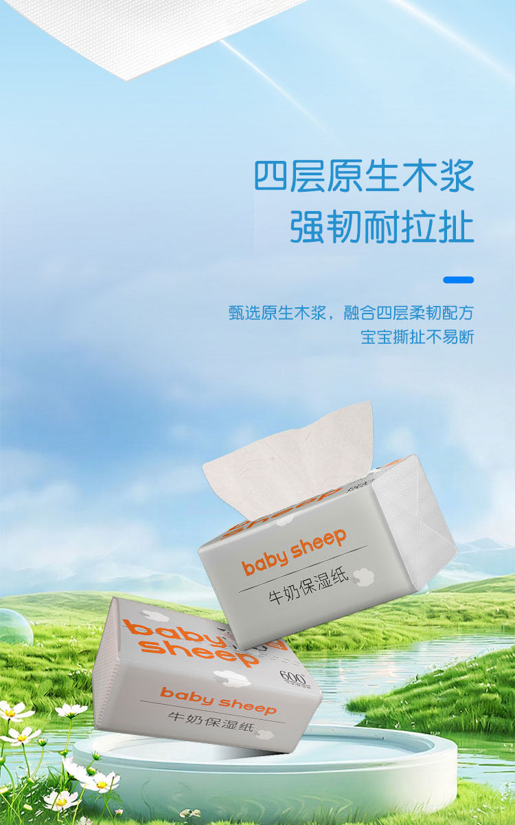 babysheep kem dưỡng ẩm mềm khăn giấy bé đặc biệt sữa khăn bé tay miệng mũi nhạy cảm kem giấy 3 gói
