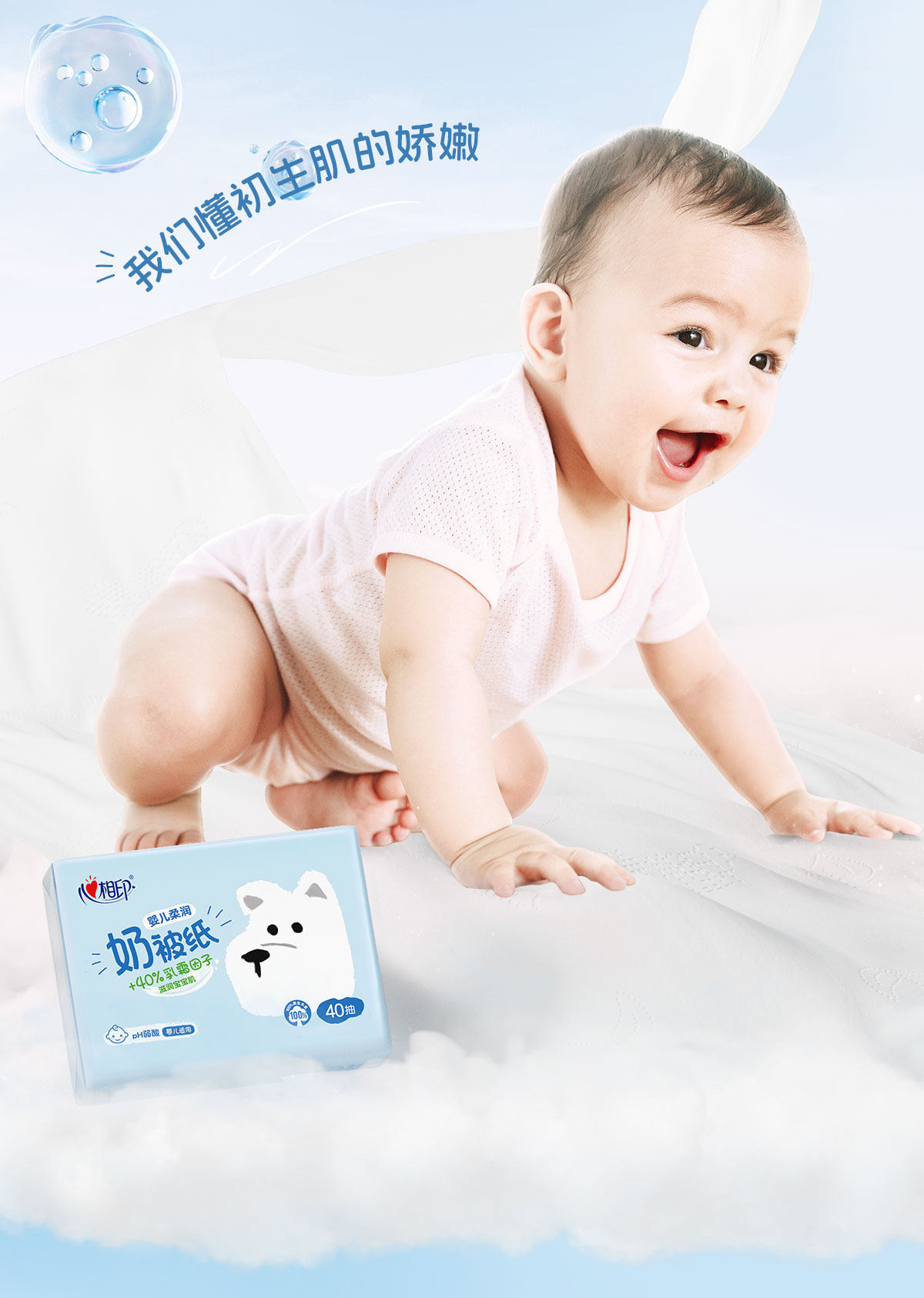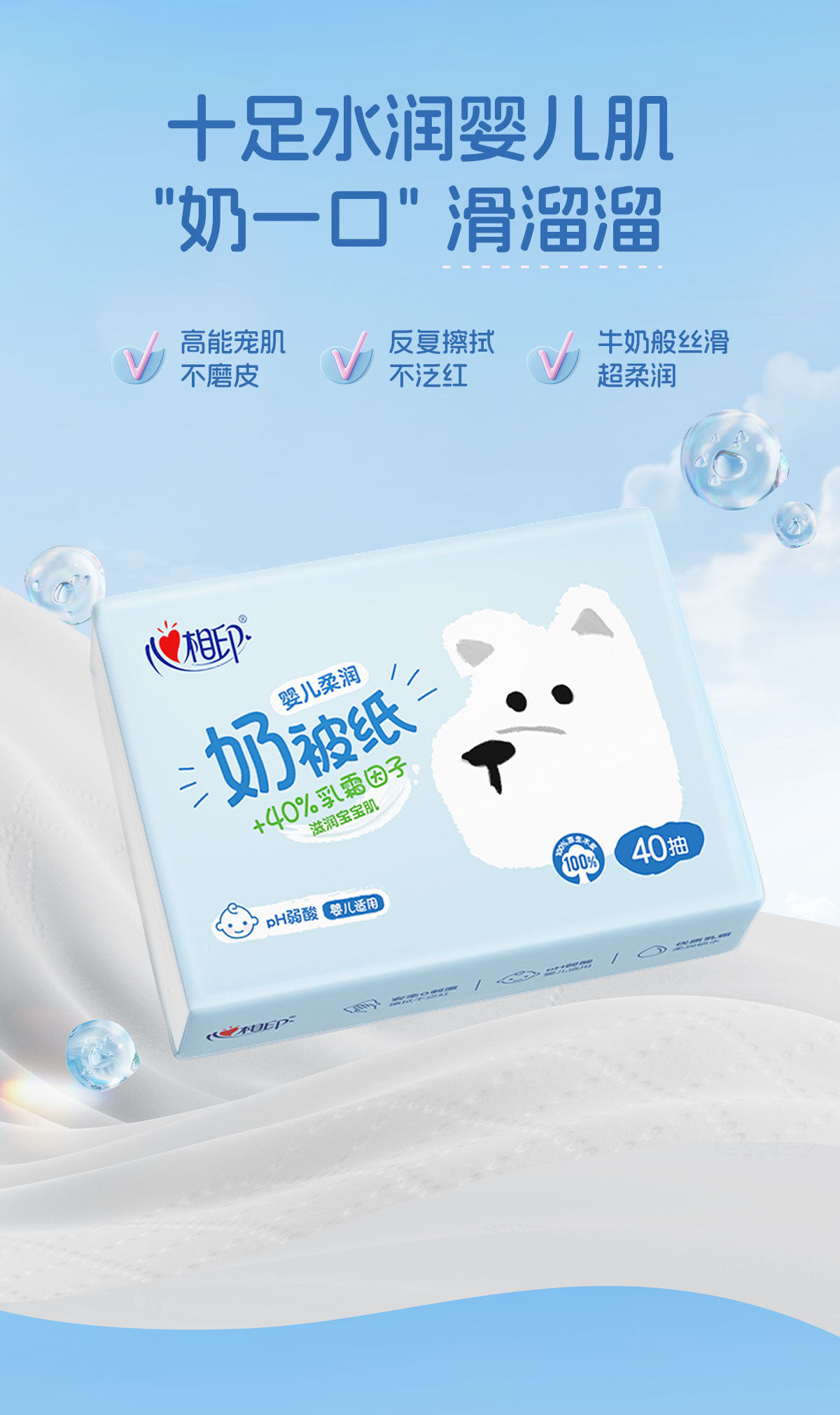In trái tim em bé sữa mềm được làm từ giấy Em bé dùng kem khăn giấy mềm Khăn giấy mềm 40 gói giấy nhỏ đi học