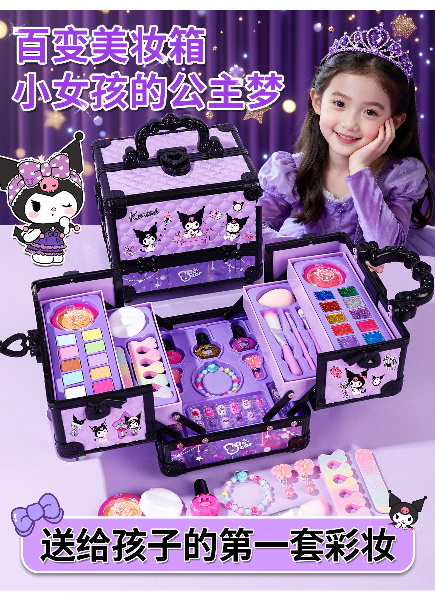 Trẻ em mỹ phẩm cô gái trang điểm bộ đầy đủ không độc hại có thể giặt được hộp trang điểm cho công chúa đồ chơi sinh nhật bé gái