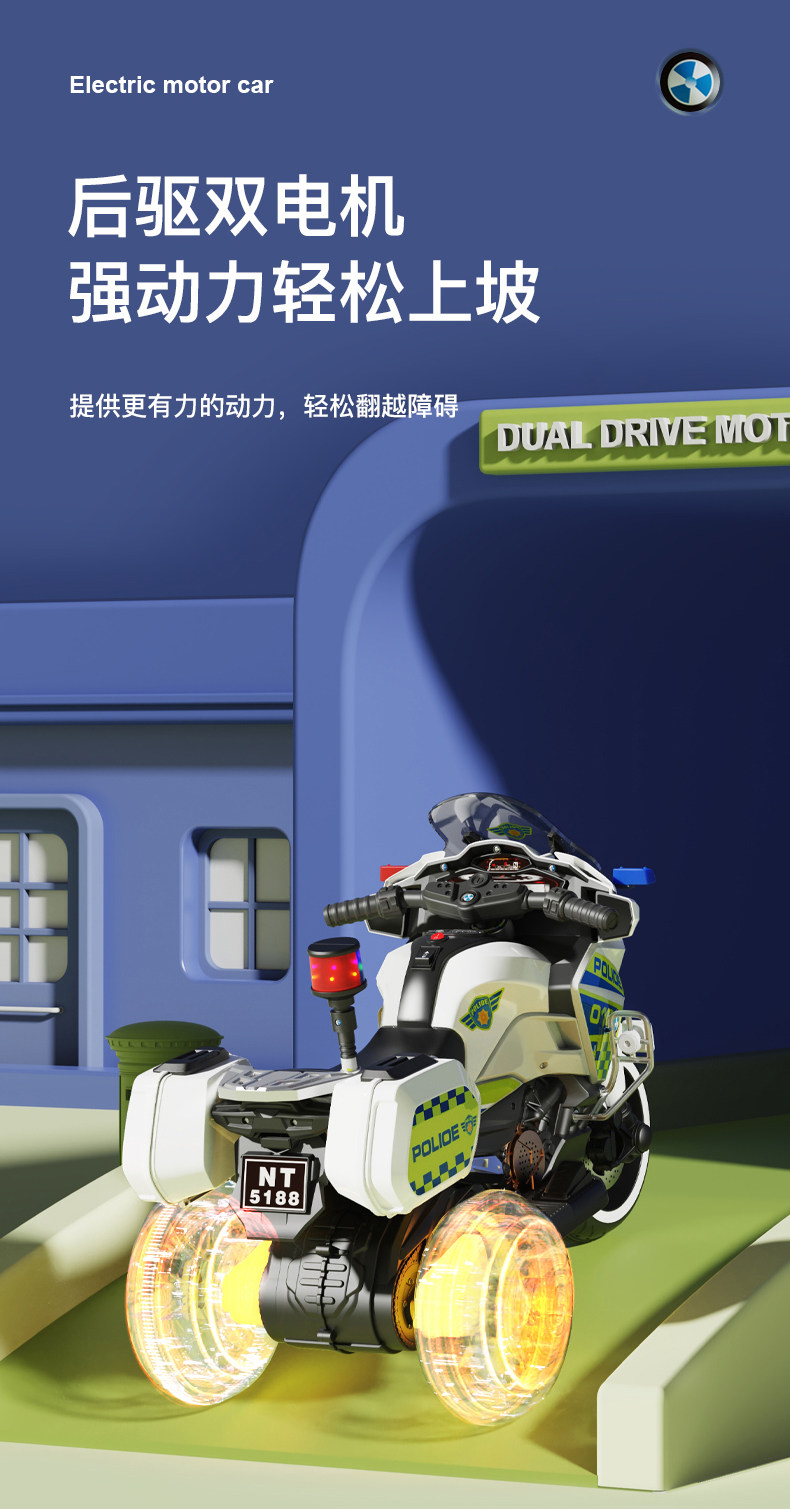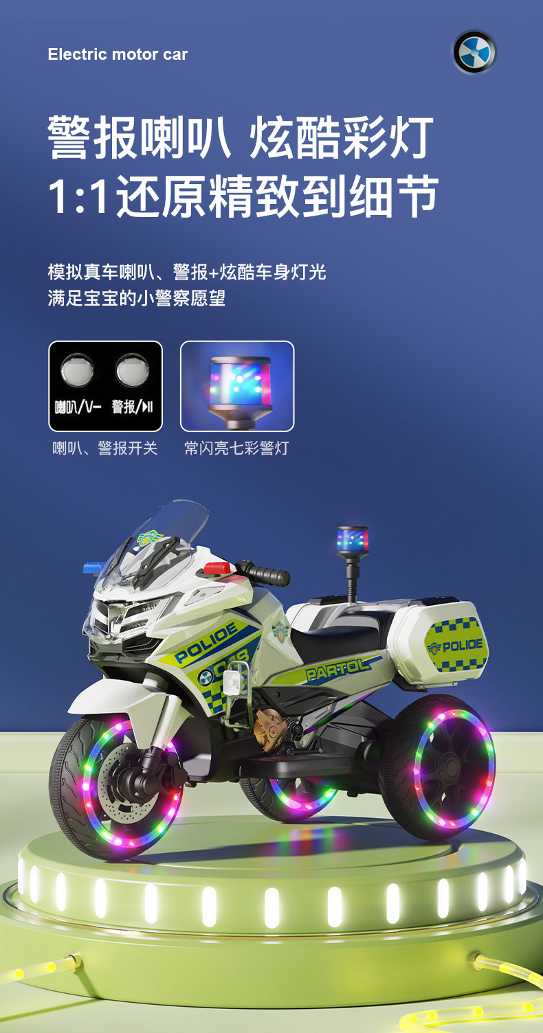 Trẻ em đầu máy điện đồ chơi trẻ em xe có thể đi xe ba bánh nam nữ trẻ em sạc cảnh sát điều khiển từ xa xe đẩy