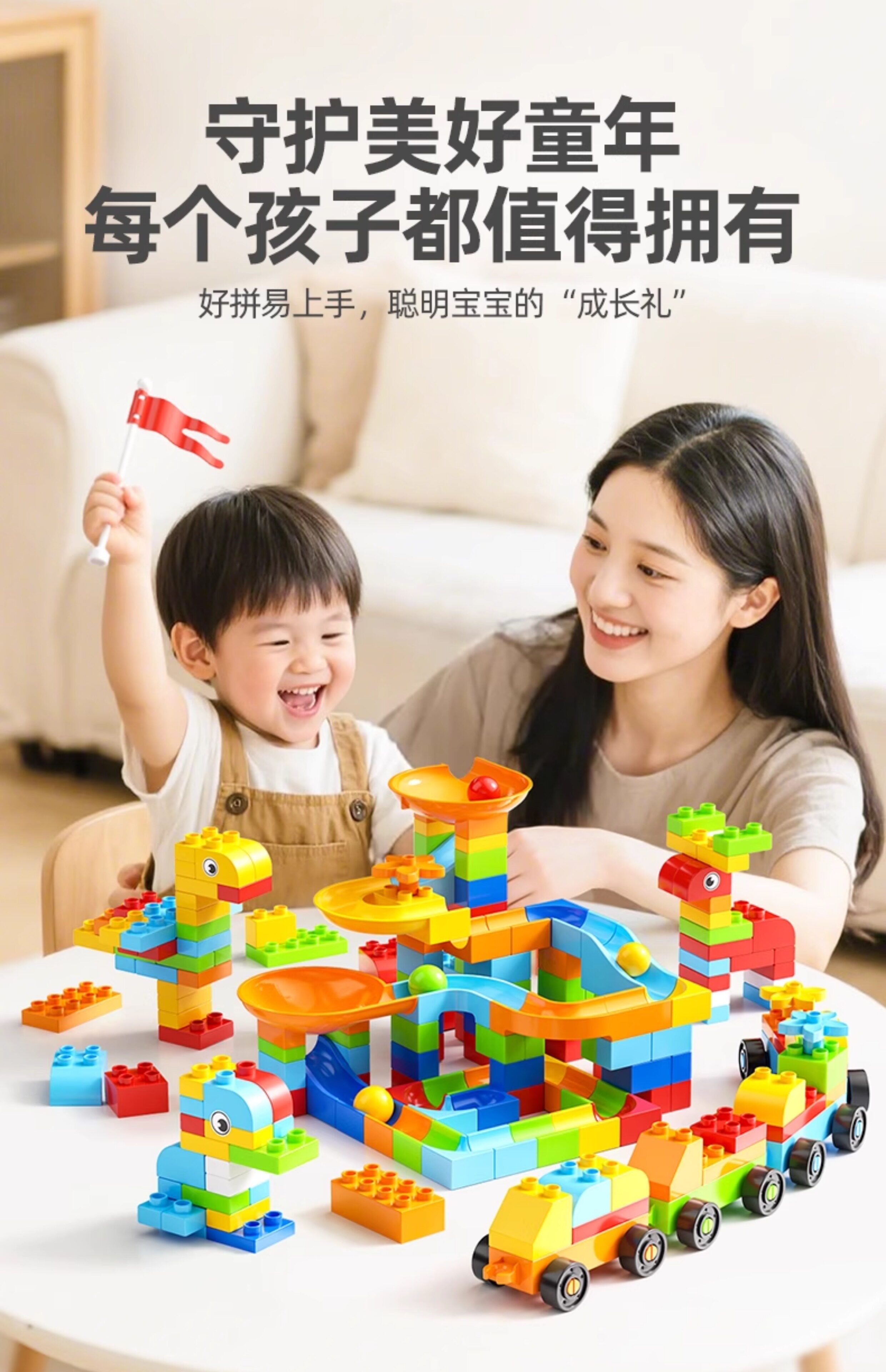 Khối xây dựng lớn cho trẻ em Đồ chơi ghép hình Câu đố cho trẻ em trai và phụ nữ Trẻ em 0 đến 3 tuổi 1-6 đường trượt 2 câu đố dạy sớm