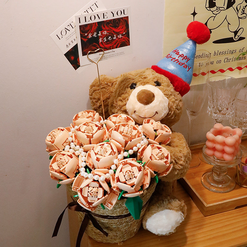 Gói hoa khối Gói hoa toàn bộ Gói hoa khối Bộ sưu tập hoa cô gái Đồ chơi ghép quà sinh nhật cho nam và nữ
