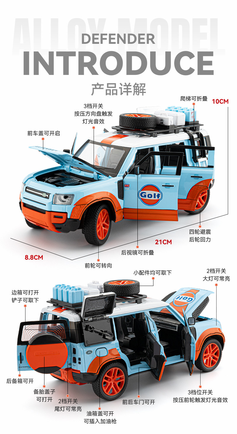 Land Rover Defender cải tiến mô hình xe việt dã giống như xe hợp kim thật, xe đồ chơi trẻ em, đồ trang trí cho bé trai.