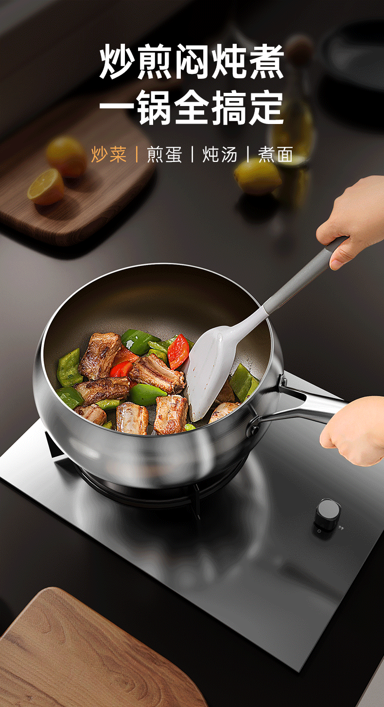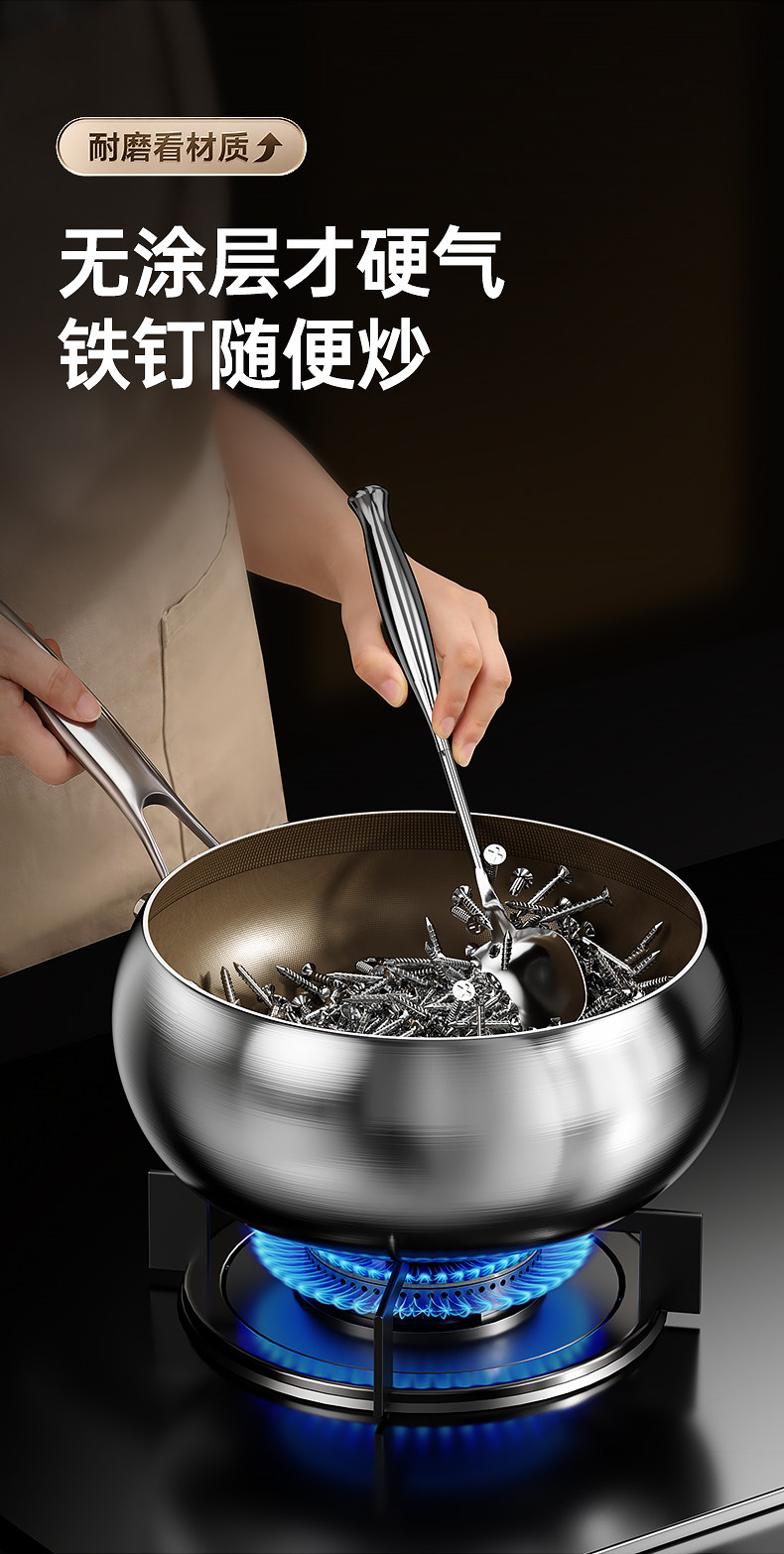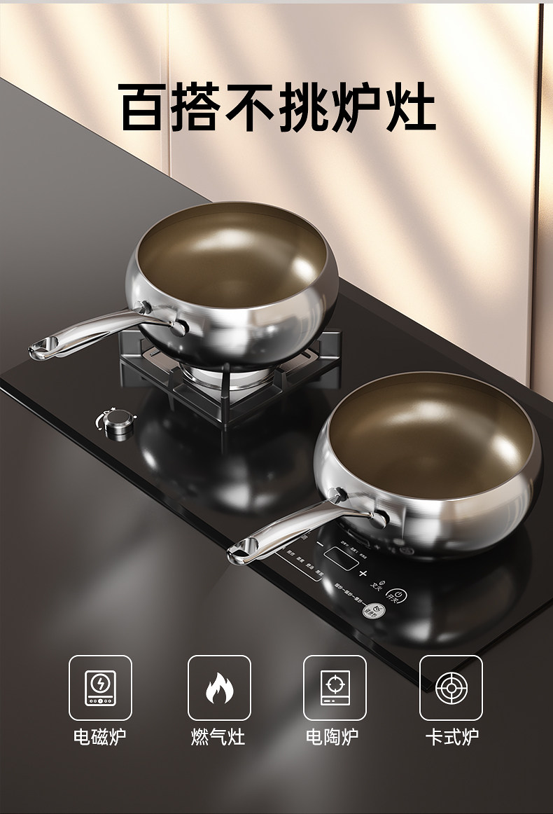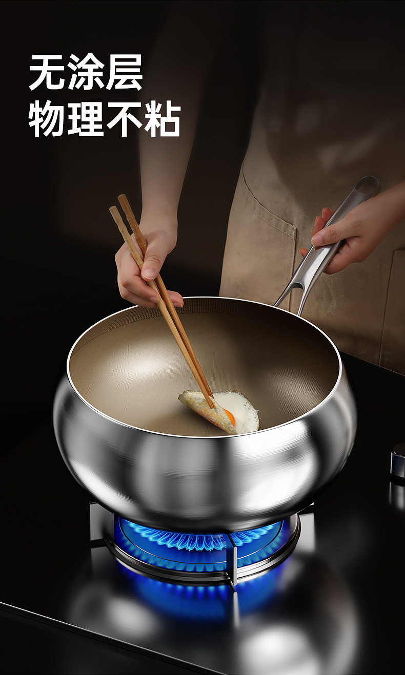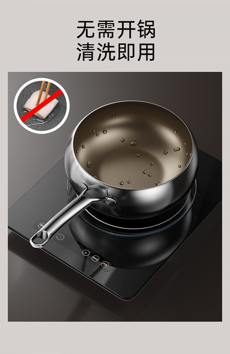 True Titanium Uncoated Non-Sticky Pan Frying Pan cho gia đình Bếp điện từ Gas Bếp đặc biệt đáy bằng thép không gỉ Big Belly Pan