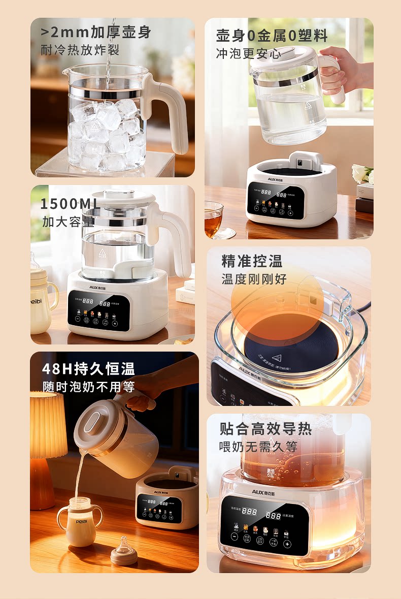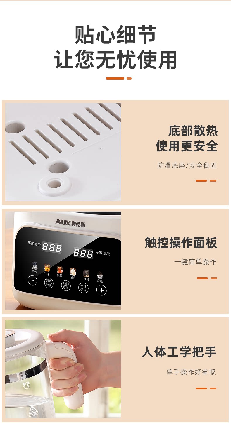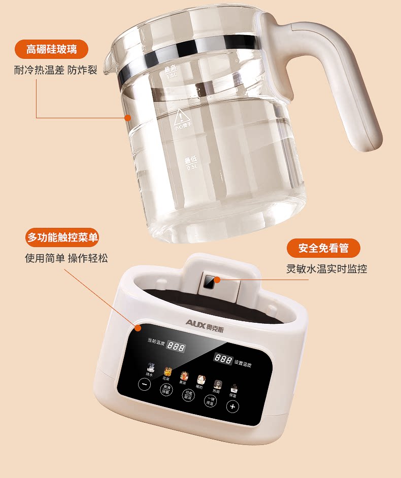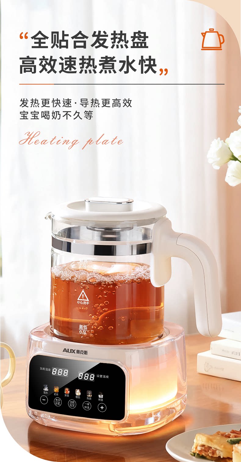 [Tất cả thủy tinh 0 keo] Oxus dưỡng sinh ấm trà hoa ấm đun nước nhiệt độ không đổi một trong sữa pha trà